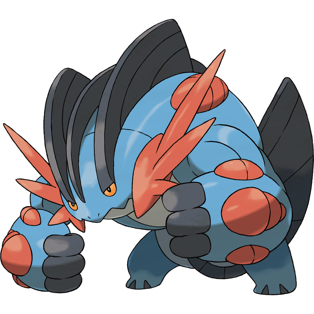 Swampert is very strong. It has enough power to easily drag a boulder weighing more than a ton. This Pokémon also has powerful vision that lets it see even in murky water.
